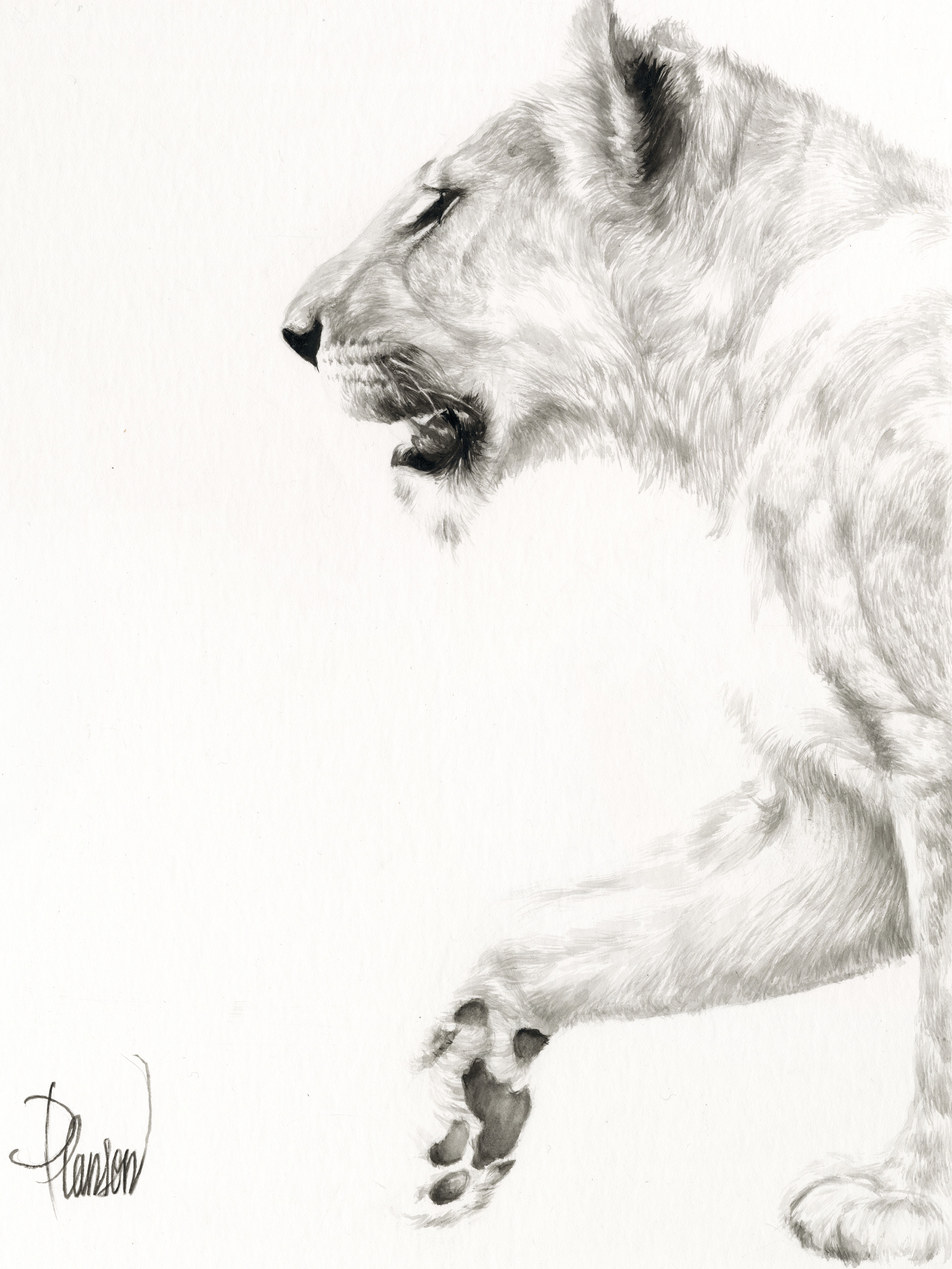 LION THREAT Pastels sur Demi-Teinte Canson 40 x 50 cm Disparu dans l’incendie du Col Vert